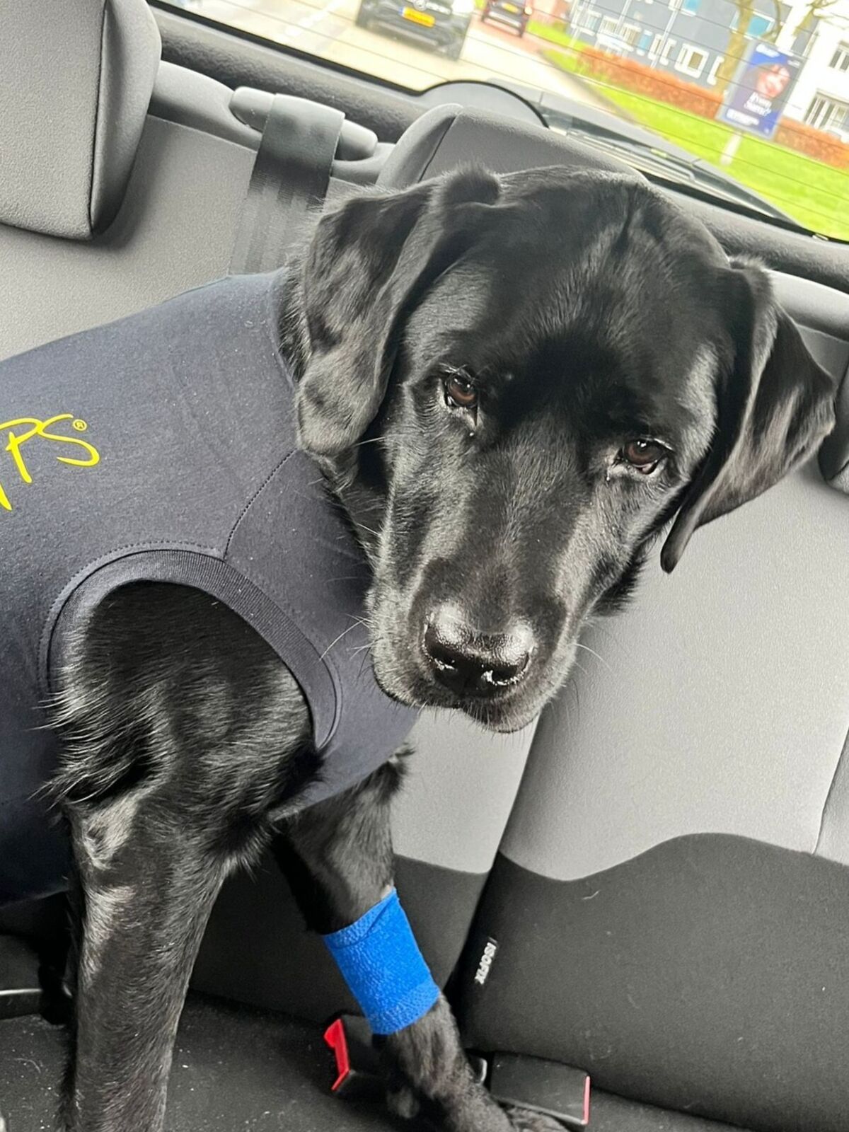 Gisteravond werd ik gebeld door de eigenaar van Bodhi. Deze 1,5 jaar oude labrador was veel te rustig en braakte heel veel. In de praktijk bleek wel dat Bodhi heel ziek was. In eerste instantie dacht ik aan de ziekte van Addison, een levensbedreigende ziekte. Middels bloedonderzoek werd dat echter uitgesloten. Met een injectie tegen het braken, gaven we Bodhi een nacht de kans om zich beter te voelen.
