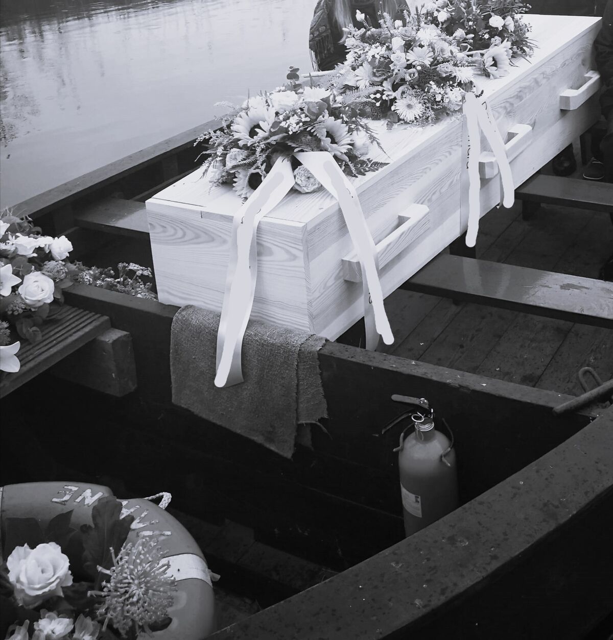 Zo varen we op de dag van de uitvaart, een uur lang, vanuit het dorpje waar ze met zoveel plezier gewoond heeft, naar een aanlegsteiger. Geen praktische keuze, maar haar laatste wens. Haar laatste reis moest over het water gaan. Zij hield van varen, van de beweging en het geluid van het water. De boot gleed traag door het landschap, het was alsof de tijd even stilstond. Het was stil aan boord, blikken dwaalden af naar de horizon, ieder had zo zijn eigen gedachten. We volgden een kronkelend pad van golven en riet, zo anders dan over een rechte weg met asfalt.