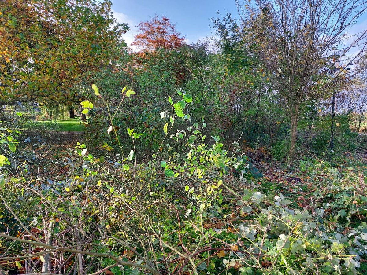 In het park zijn veel jonge esdoorns en elzen (zaailingen) gegroeid. Deze overwoekeren de sierheesters die vroeger bewust zijn geplant. We halen deze jonge boompjes weg.