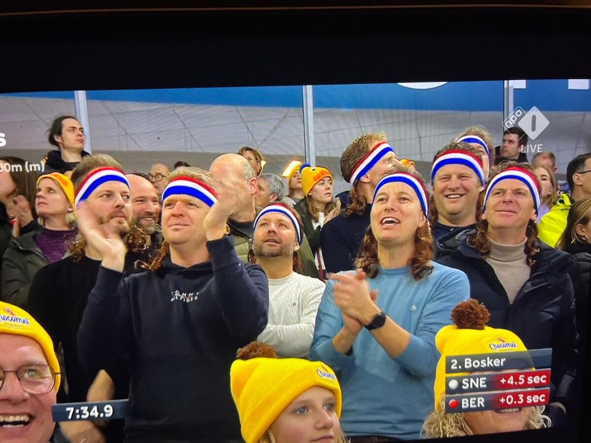 Hun missie? Dorpsgenoot Jorrit Bergsma aanmoedigen tijdens de 10 kilometer op het Olympisch Kwalificatie Toernooi (OKT).