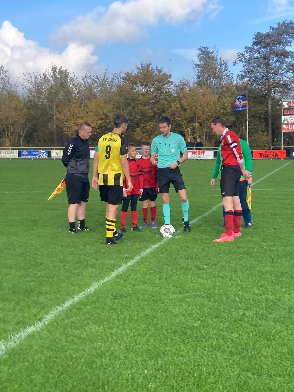 Dan de echte graadmeter thuis tegen koploper Gomos, die na 5 wedstrijden de volle winst wist te pakken en fier aan kop ging met 15 punten uit 5 wedstrijden. Akkrum speelde volwassen en liet zich niet gek maken door in de val van Gomos te lopen. Door goed positiespel, de ruimtes prima te benutten en daardoor ook kansen te creëren, werd brutaal een 1-0 voorsprong genomen na een prachtige (ingestudeerde) aanval. Gomos was weliswaar met name in messcherpe counters gevaarlijk, maar Akkrum wist de voorsprong te behouden. Toen vlak voor tijd de bevrijdende 2-0 viel was de strijd gestreden en ontnam het Gomos de ongeslagen status.